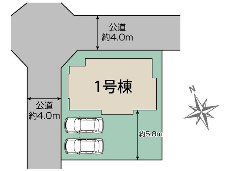 二方(除角地) 西 間口13.5m 公道 幅4m 北 間口9.8m 公道 幅4m |