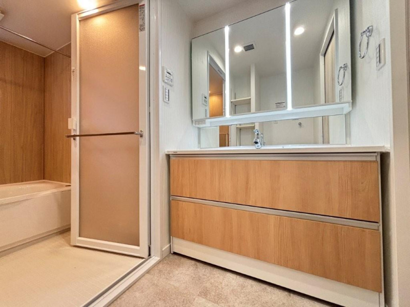 | 設備 | 都市ガス、システムキッチン、浄水器、食器洗浄乾燥機、追焚機能、バス・トイレ別、温水洗浄便座、洗面所、洗面台、室内洗濯機置場、浴室乾燥機、BS、CS、フローリング、照明器具付き、3面バルコニー、収納スペース、ウォークインクローゼット、エレベータ、宅配ボックス、駐輪場、バイク置場、オートロック、火災警報器等設置済 | ||
