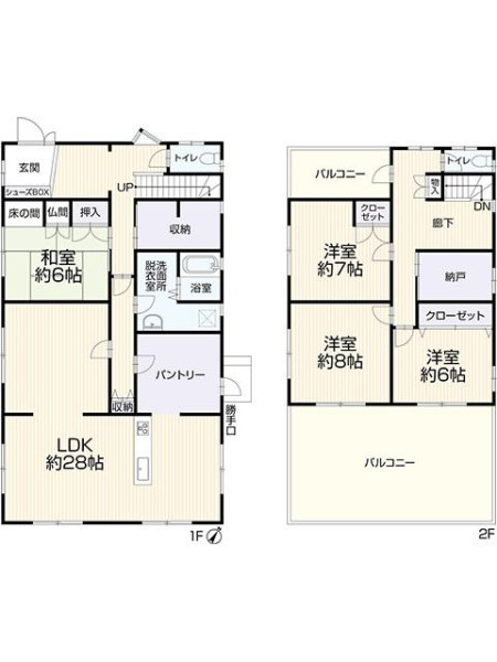 | 設備 | 都市ガス、上水道、下水道、システムキッチン、カウンターキッチン、トイレ2箇所、シャワー、温水洗浄便座、庭、床下収納、駐車2台可、モニタ付インターホン | ||