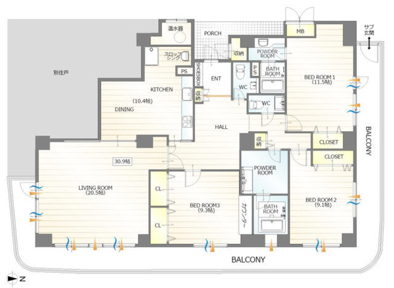 | バルコニー面積 | 64.18㎡ | バルコニー向き | 南 |