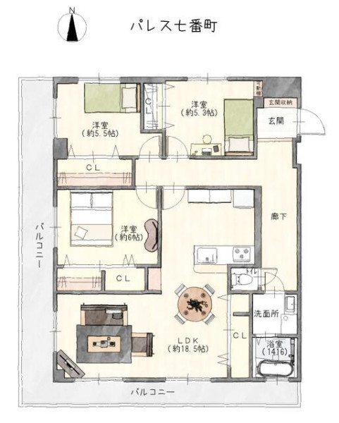 | 間取り | 3LDK | 間取り向き | (角部屋) |