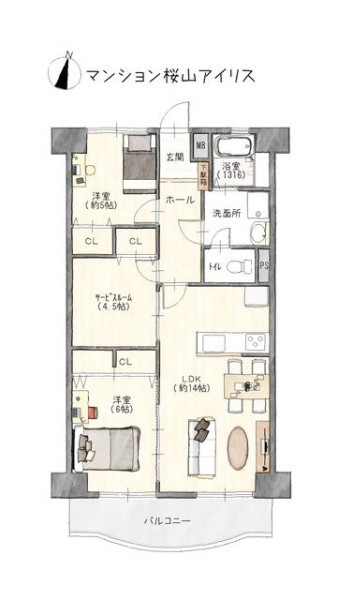 | バルコニー面積 | 8.89㎡ | バルコニー向き | 南 |