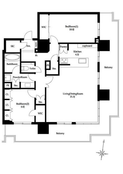 | 間取り | 2LDK | 間取り向き | (角部屋) |