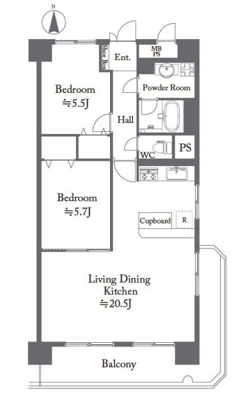 | 間取り | 2LDK | 間取り向き | (角部屋) |