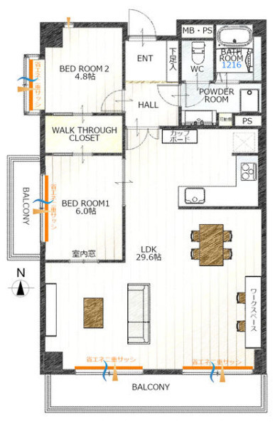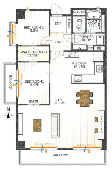 | 間取り | 2LDK | 間取り向き | (角部屋) |