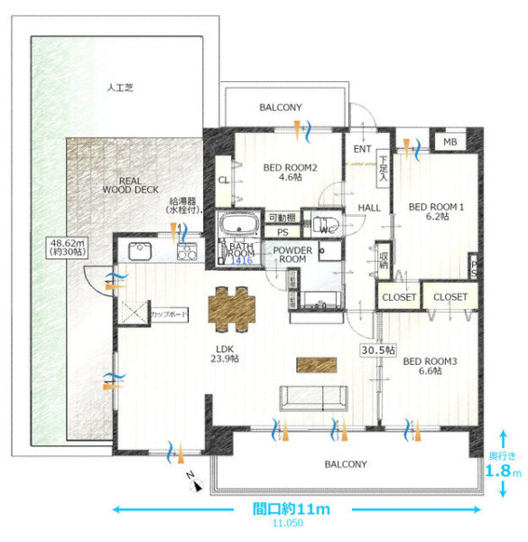 | バルコニー面積 | 18.36㎡ | バルコニー向き | 南西 |
