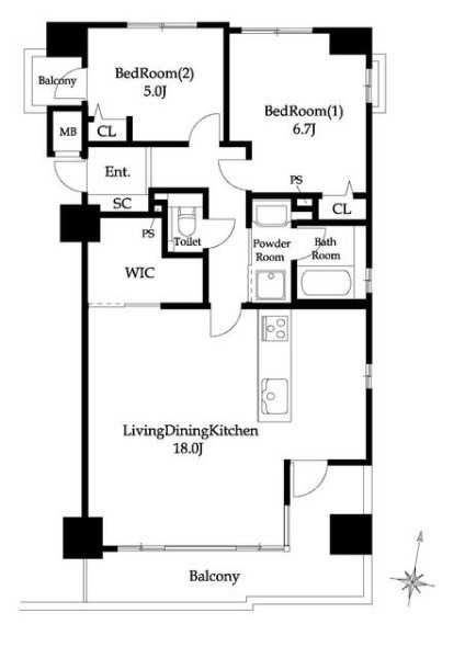 | 間取り | 2LDK | 間取り向き | (角部屋) |