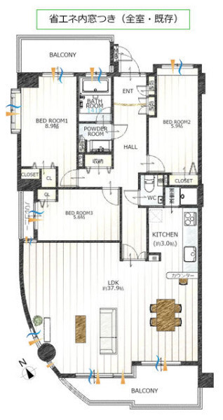 ・南向き×3面バルコニー×角部屋で、心地よい光と風!