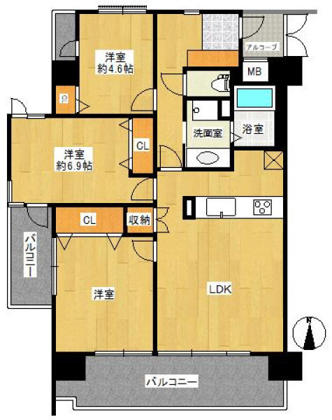 | 間取り | 3LDK | 間取り向き | (角部屋) |