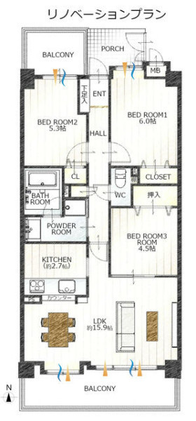 | 間取り | 3LDK | 間取り向き | |