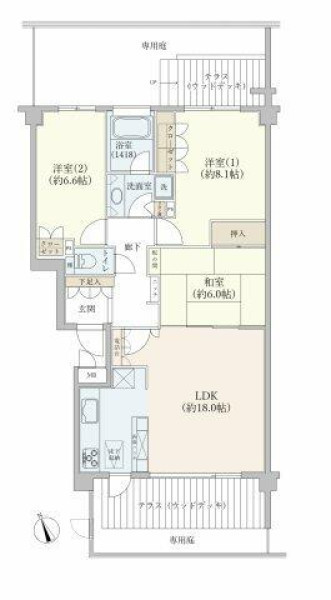 | 設備 | 都市ガス、システムキッチン、浄水器、浴室乾燥機、床暖房、テラス、専用庭、収納スペース、床下収納、エレベータ、宅配ボックス、駐輪場、モニタ付インターホン | ||
