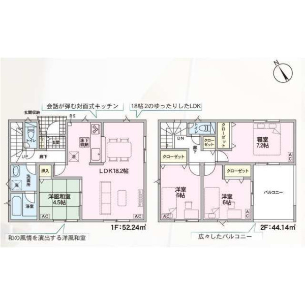| 設備 | プロパンガス、電気、上水道、浄化槽、システムキッチン、カウンターキッチン、浄水器、給湯、トイレ2箇所、温水洗浄便座、シャンプードレッサー、浴室乾燥機、フローリング、複層ガラス、ルーフバルコニー、収納スペース、床下収納、ディンプルキー、モニタ付インターホン、火災警報器等設置済、建設住宅性能評価取得(予定含む) | ||