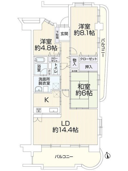 | 間取り | 3LDK | 間取り向き | (角部屋) |